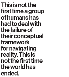 Για χρόνια τοποθετούσαμε την κλιματική/οικονομική/κοινωνική καταστροφή στο μέλλον. Ήταν προϊόν φαντασίας, απασχολούσε τους σεναριογράφους και τους συγγραφείς επιστημονικής φαντασίας και μόνο. Ακόμα και όταν έγινε σαφές ότι μπορεί να πλήξει τις επόμενες άμεσες γενιές σε 40-50 χρόνια (τα παιδιά μας και τα παιδιά τους δηλαδή), κυνικά αφεθήκαμε στην μοίρα μας και θεωρήσαμε ότι τίποτα δεν μπορεί να πάει στραβά. Η οικονομική καταστροφή ήρθε όμως ξανα και ξανά, η κοινωνική ως άμεσο προϊόν την πρώτης ακολούθησε και η οικολογική είναι εδώ. Γιατί οι πανδημίες της εποχής μας είναι προϊόν της στάσης μας απέναντι στον πλανήτη κι όχι απλά φυσικό φαινόμενο ή αποτέλεσμα ατομικού σφάλματος.